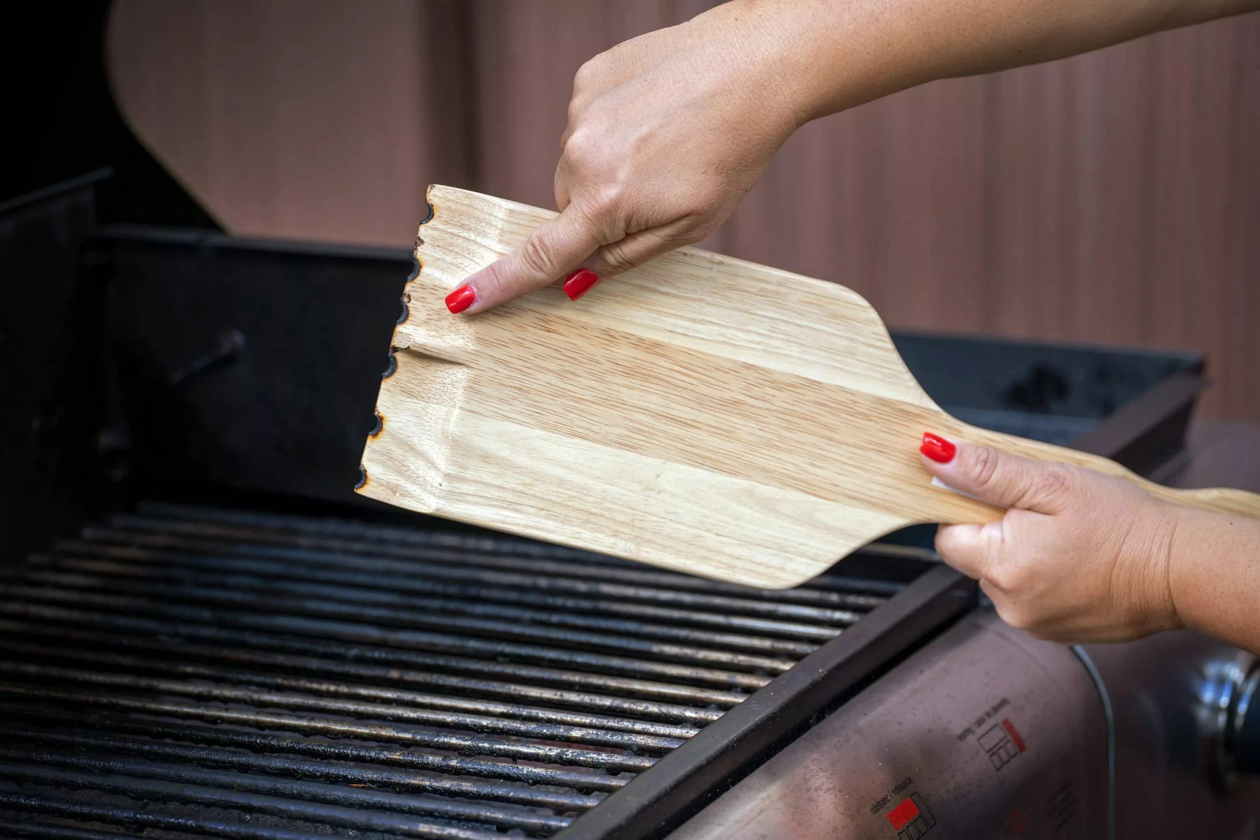 Now your grill can be safely and easily cleaned with our natural hardwood scraper. Not only does it customize to any grill grate to help easily remove burned-on food, but it features a tooth that fits between the grates securing the scraper for easy back and forth motion. It’s safe, natural and easy to clean, requiring no maintenance.