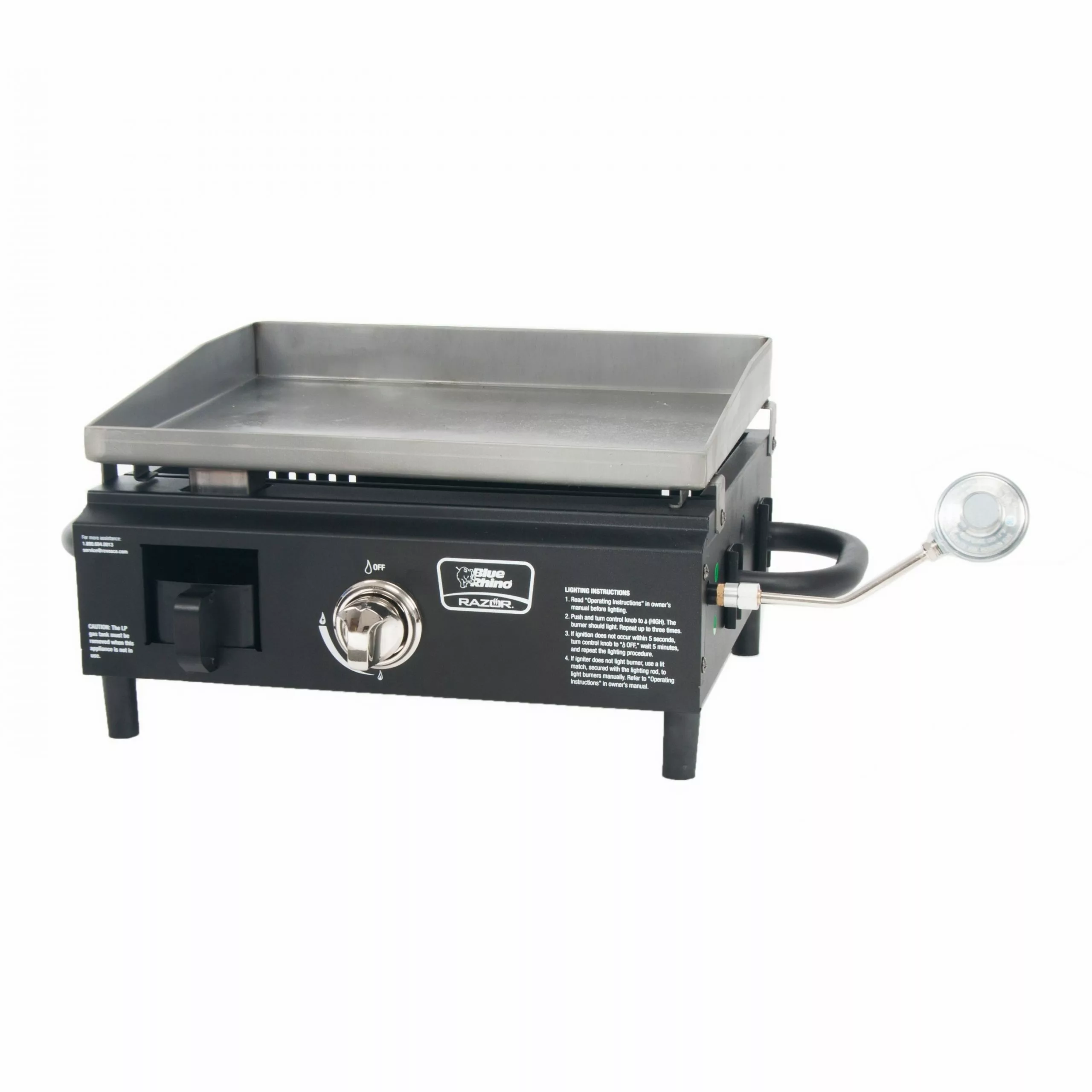 Cook up to 20 burgers at a time, fry up some eggs, sizzle some bacon or even do stir fry…all with the versatile Razor™ portable griddle grill by Blue Rhino®. Perfect for camping, tailgating or your backyard, the Razor™ features a large stainless steel burner for a total of 18000-BTU of power. A push and turn ignition makes this grill easy to light and simple to use. Clean up is a snap and no spills with the unique grease management system and concealed cup. Two handles allow for quick and easy transport to your next cookout.