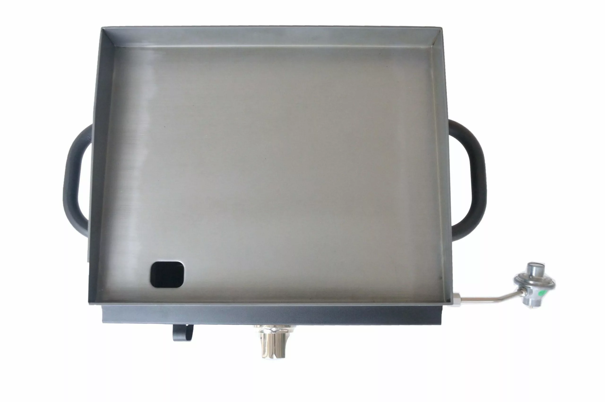 - Thick rolled-steel pre-seasoned cooking griddle top