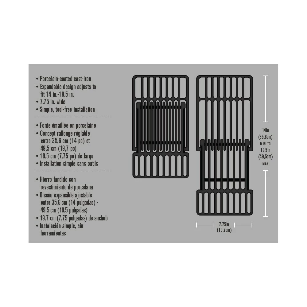 If you’re looking for a hotter grate or just need to replace your heavy-duty one, this universal cast iron grate adjusts to fit grills from 14″ to 19.5″ and includes multiple mounting options. Check your grill owner’s manual to make sure it will fit.