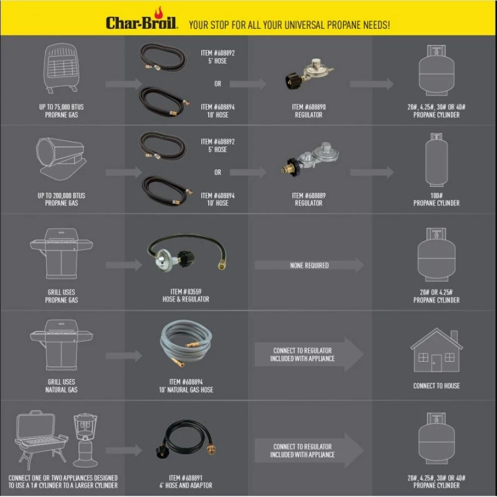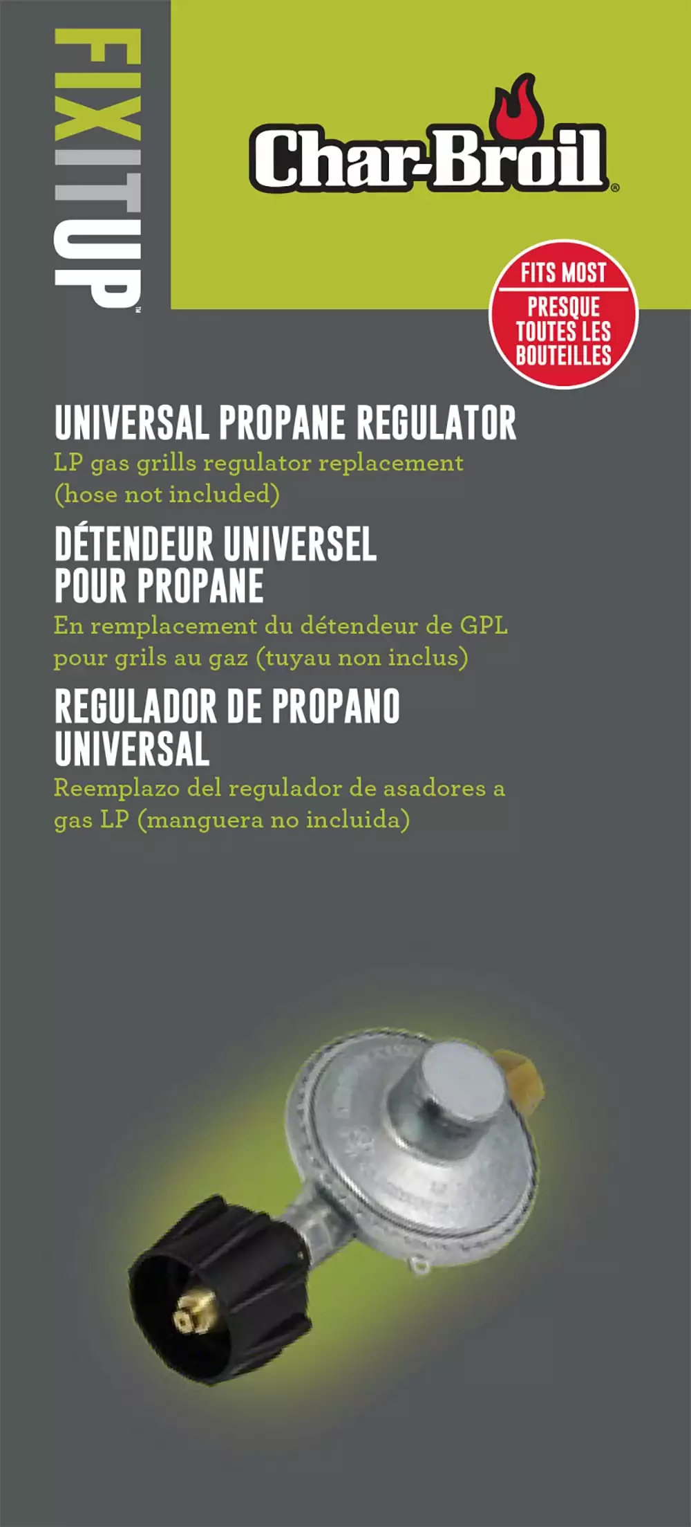 - Replaces regulator on LP gas grills up to 75,000 BTU’s