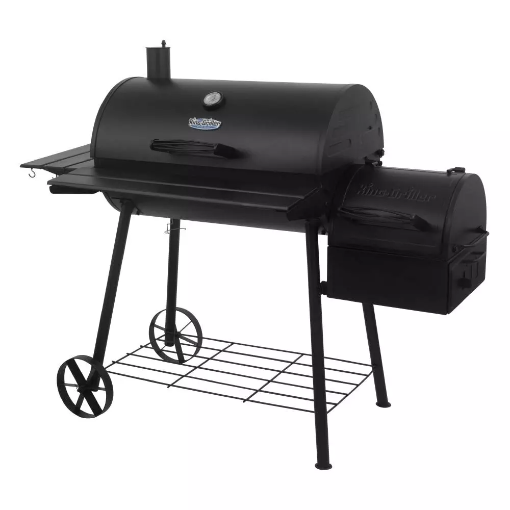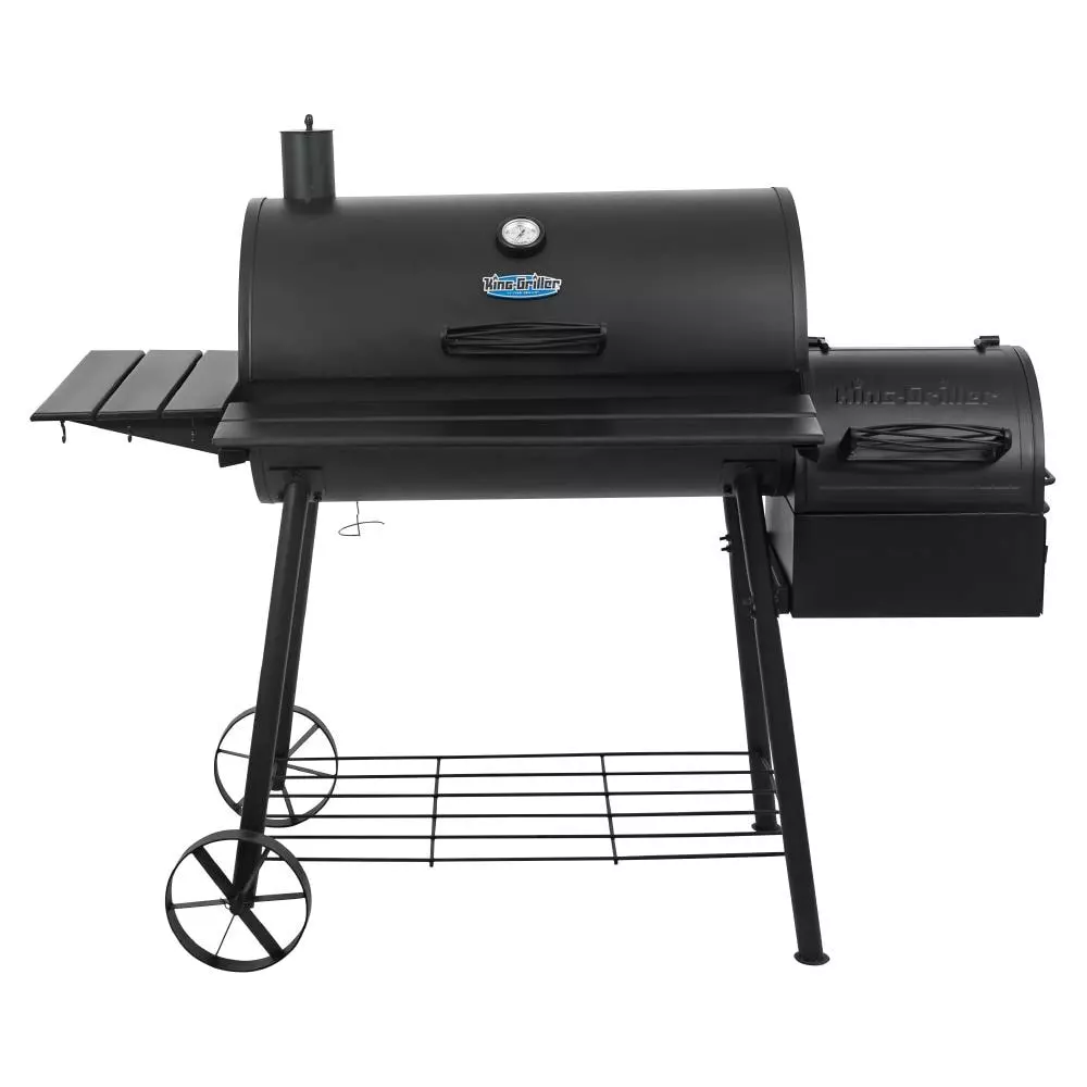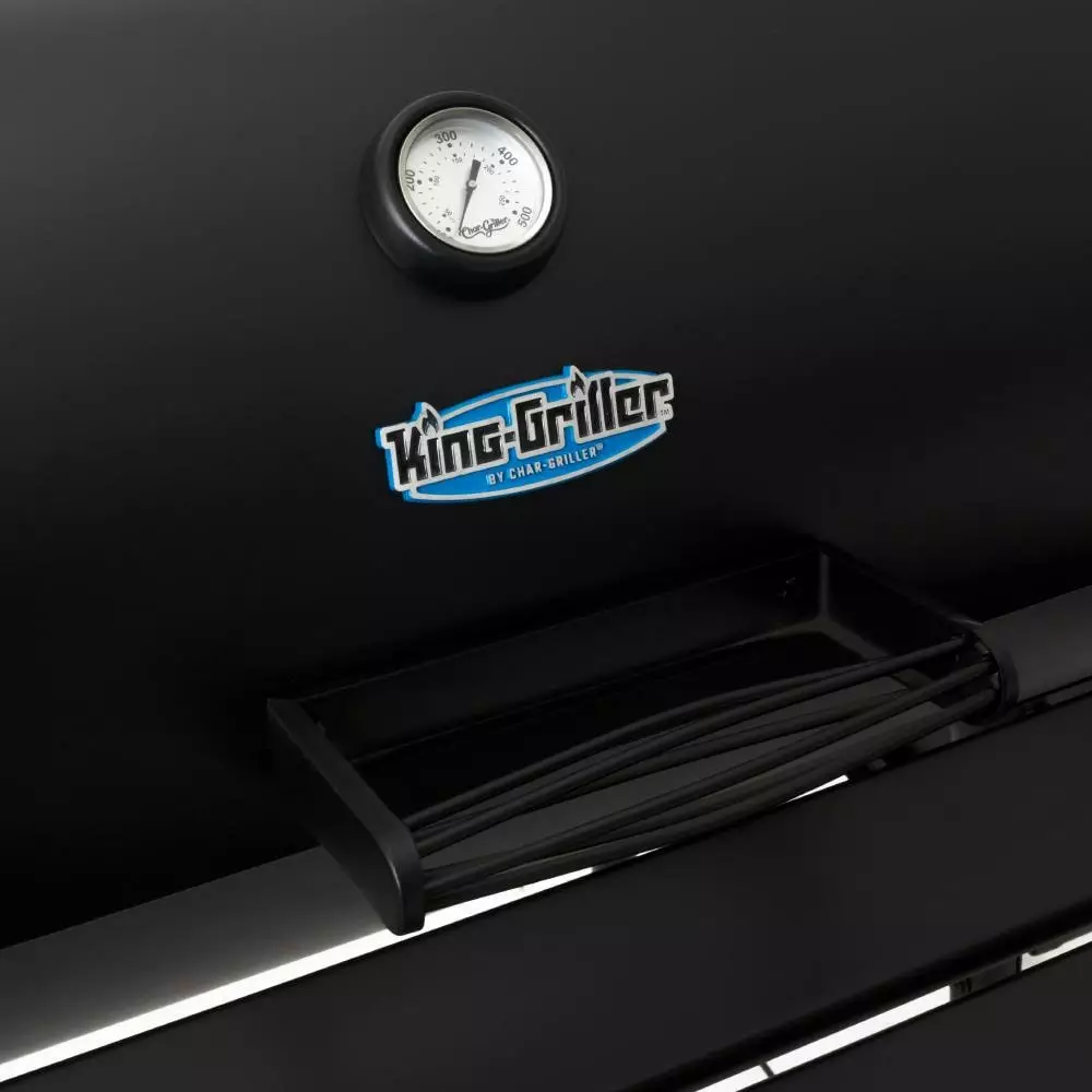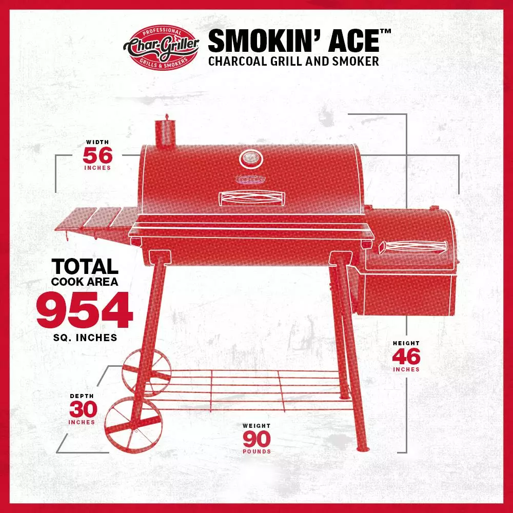 The King-Griller™ (by Char-Griller®) Smokin’ Ace™ Charcoal Grill provides the versatility valued by barbecue pros and backyard enthusiasts, at a family friendly cost. It features a large grilling area with cast iron cooking grates and a warming rack. The built-in temperature gauge and adjustable fire grates provide added temperature control. The included side firebox is equipped with an easy to clean ash drawer. Manufactured with durable steel ensures this grill will last for years.