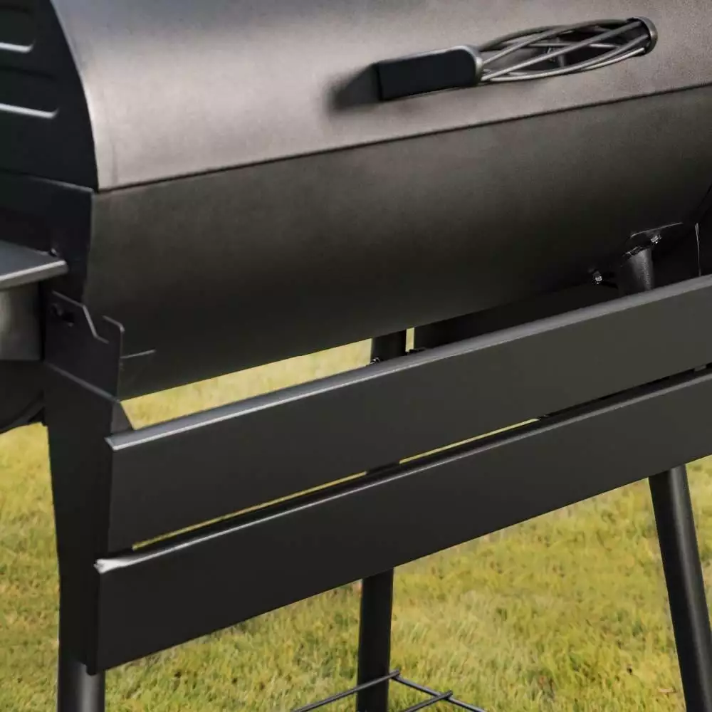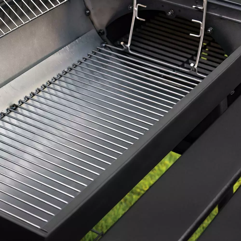 - Includes side firebox with convenient ash drawer for Texas-style offset smoking