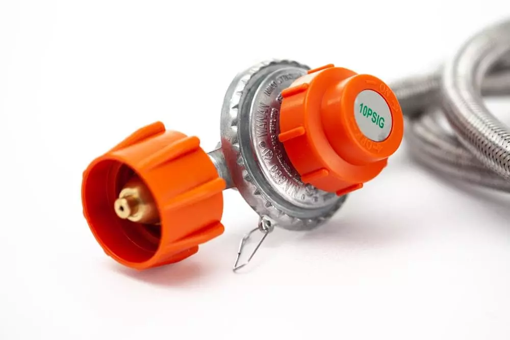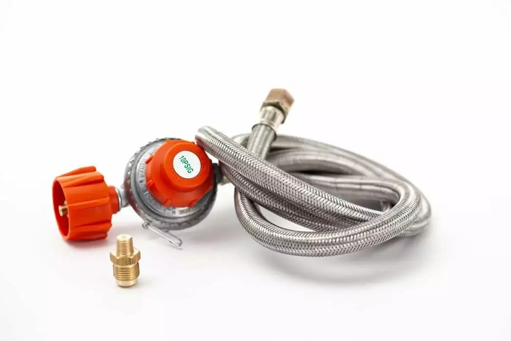 The LoCo cookers 48-in high pressure regulator with hose has a flow regulator safety valve and CSA certified. The 48-in stainless braided hose increases the distance from the propane tank to your cooking stand and pot. Our regulator hose comes with both male and female connectors with a universal connection.