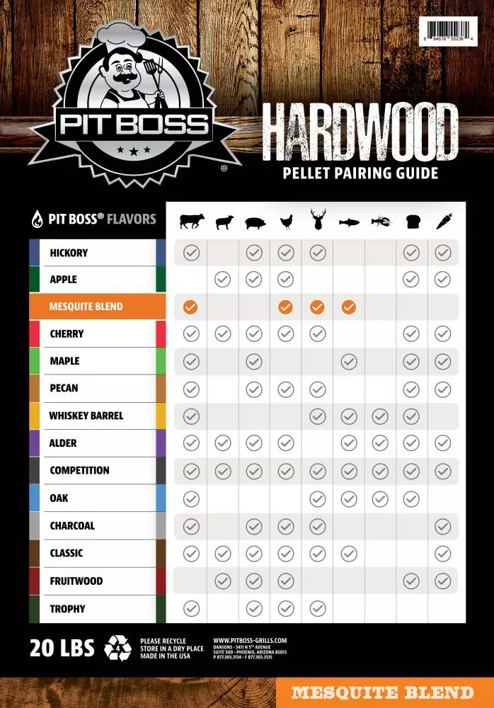 Enjoy the real, Texas strong aroma of Pit Boss mesquite hardwood pellets. Tangy. Spicy. Authentic. These pellets are the perfect level of bold to kick up the flavor in your steak, pork butt, or Tex-Mex cuisine. All Pit Boss hardwood pellets are 100% all natural and free of artificial flavors, spray scents, glues, or chemicals. Get bold, robust aroma that works for all your bigger. Hotter. Heavier grilling and smoking needs with the Pit Boss mesquite hardwood pellets.