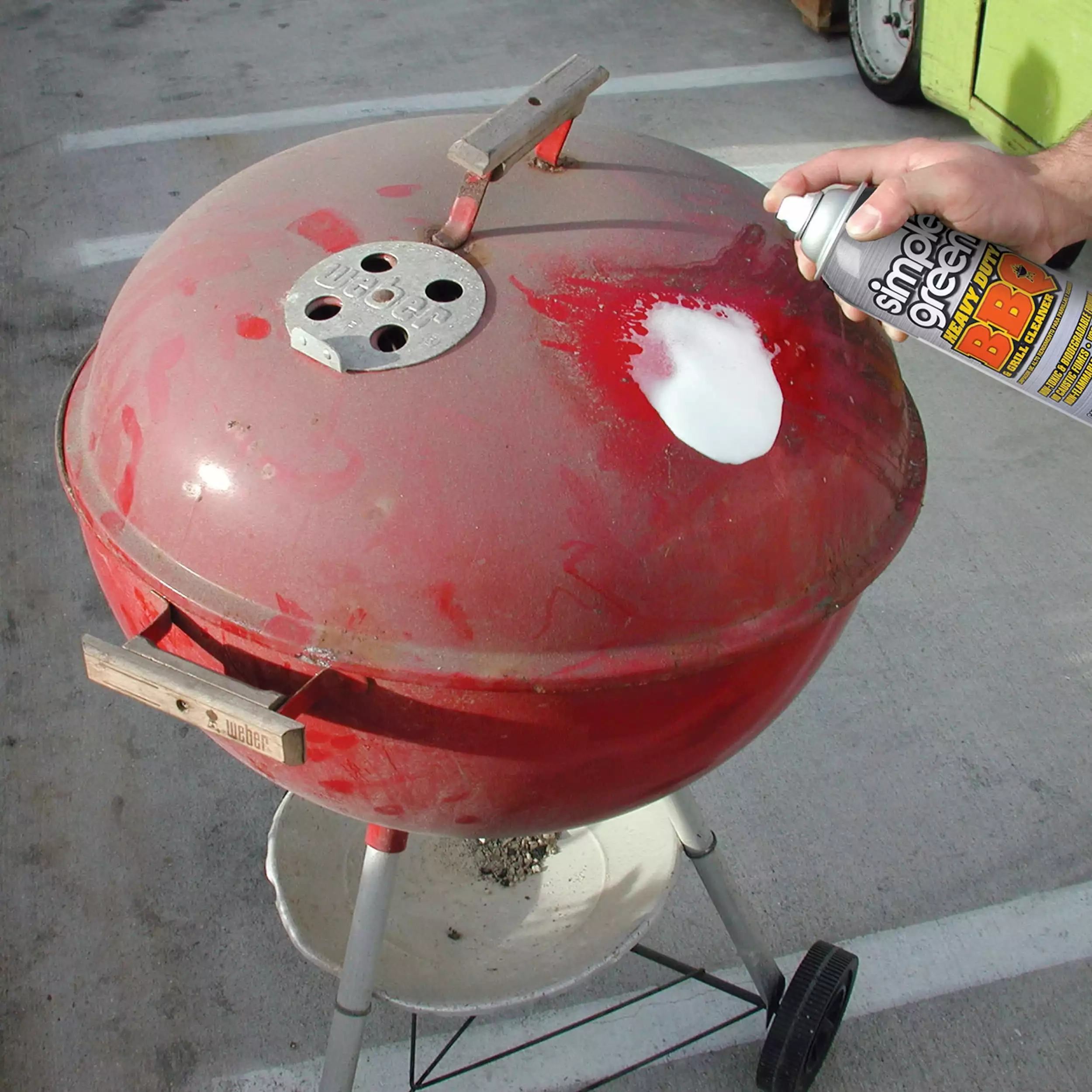 Simple Green Heavy Duty BBQ and Grill Cleaner cleans heavy grease build-up, baked-on food and carbon deposits on grates, stainless steel parts, smokers, BBQ covers and more. The residue-free formula is safer for use on cooking surfaces. The spray foam clings to vertical surfaces and hard-to-reach areas and contains no added color or scent. The non-flammable, non-abrasive and non-corrosive formula safely cleans steel, aluminum, plastic and more.