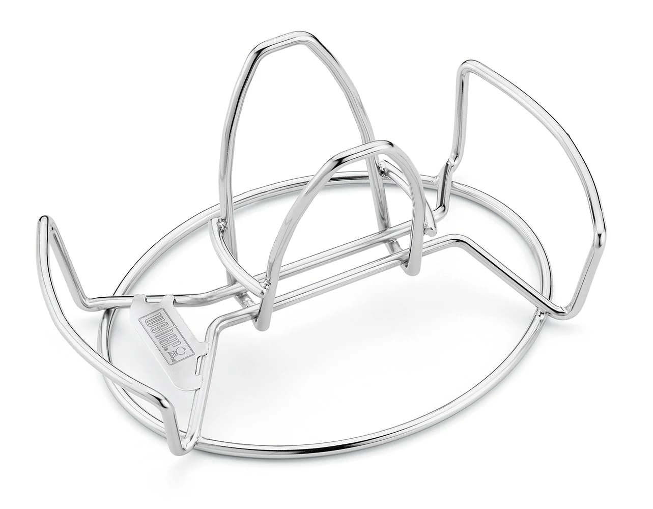 Beer can chicken is a classic barbecue preparation that places a whole chicken upright over a partially-filled can of beer (or wine or other liquids in a can). Cooked in the indirect method, the liquid gently boils and infuses the chicken with flavor and ensures moistness. Our poultry roaster has been designed to provide better stability and easier transport of your beer can chicken from grill to table. From now on beer can chicken will be a joy to cook and a snap to serve.