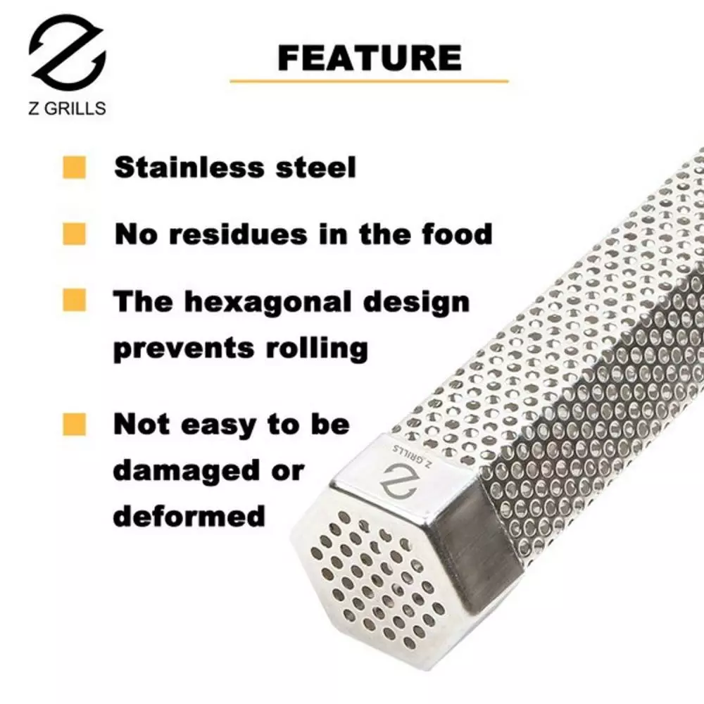 - Superior hexagon design –this premium stainless steel tube smoker with new hexagon design, it will not roll up or fall off on the grill to provide you with a better and safer smoke absorption effect
